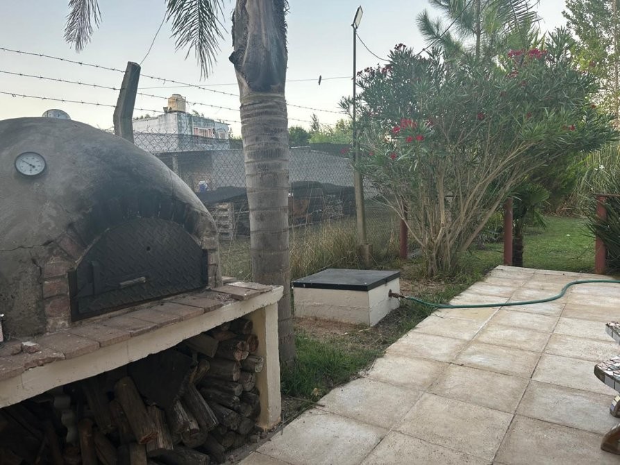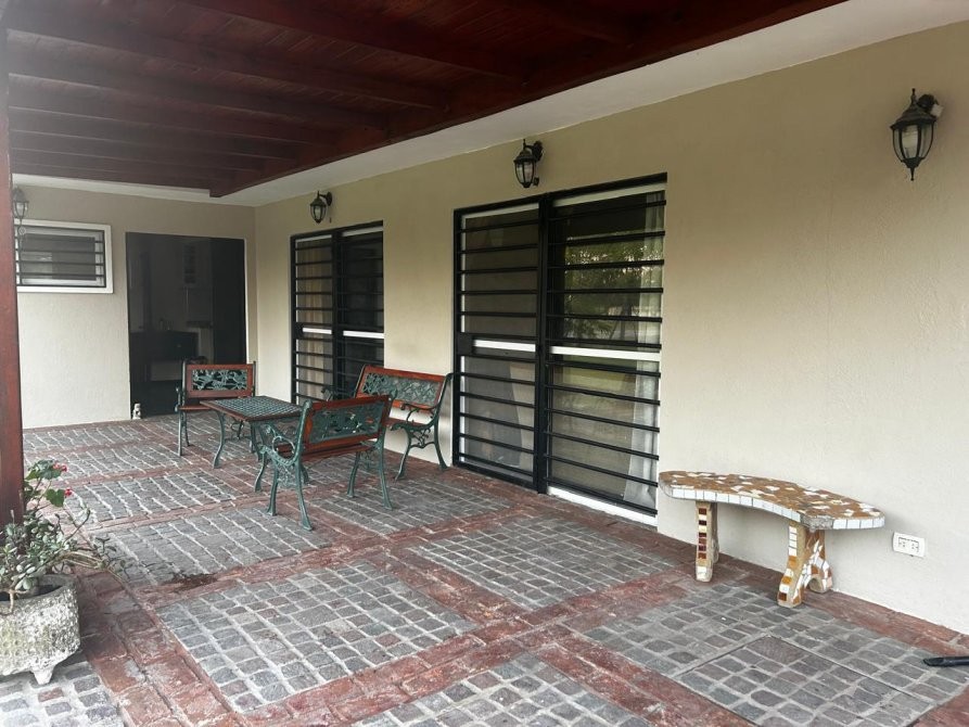 la galeria exterior con vista abierta al amplio jardin arbolado es ideal para disfrutar en cualquier momento del dia. la continuidad de la galeria hacia el patio trasero nos lleva a recorrer el sector de parilla techado y el del horno de barro.
